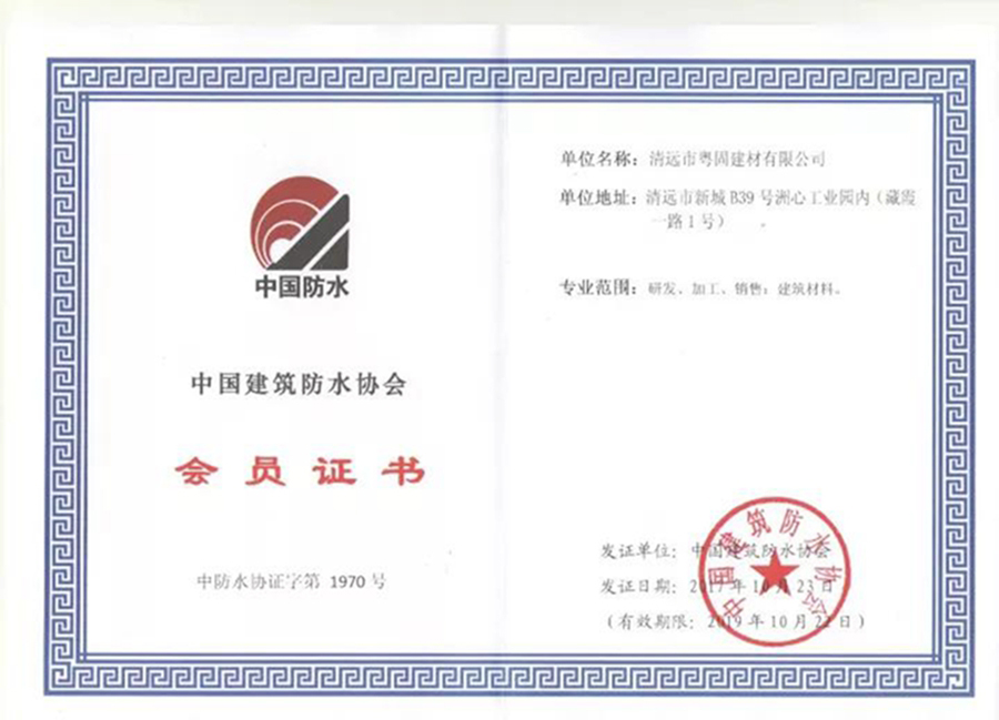 此次(ci)粵固(gu)建材有(you)限公(gong)司獲得入選(xuan)為中國(guo)防(fang)水協會(hui)會(hui)員單位。公(gong)司表示:將進一步(bu)加強行(xing)業自律和誠信體系建設,不斷規(gui)范行(xing)業行(xing)為,弘揚職業道德,倡導公(gong)平競爭,促進結構創新,加強交(jiao)流(liu)(liu)(liu)合作,強化(hua)管理,自律運行(xing),創新發展,維護(hu)公(gong)平競爭的市場環(huan)境,積(ji)極(ji)踐行(xing)社會(hui)責任,推動防(fang)水行(xing)業不斷向前(qian)邁進。以一流(liu)(liu)(liu)的管理、一流(liu)(liu)(liu)的質量、專業優質的服務,推動公(gong)司跨(kua)越發展,為更(geng)多的工程建設做出更(geng)大的貢獻!