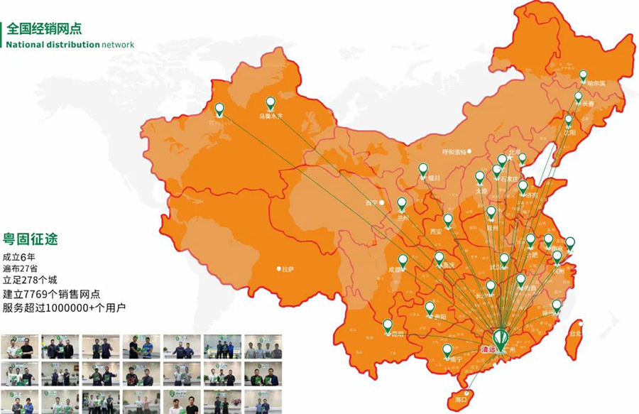 回憶粵(yue)固(gu)這6年的征途,粵(yue)固(gu)產品已翻山越嶺遍布了(le)27個省,在278座城市中站(zhan)穩了(le)腳(jiao)跟,在全國建立了(le)7769個服(fu)務(wu)(wu)網點,服(fu)務(wu)(wu)超過百(bai)萬(wan)個用戶。