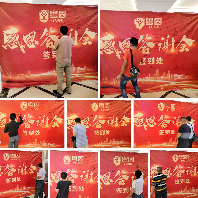 當(dang)天(tian),新(xin)老顧客(ke)踴(yong)躍來到現(xian)場,紛(fen)紛(fen)在紅(hong)色的(de)簽(qian)名墻(qiang)上簽(qian)下自己的(de)名字,密(mi)密(mi)麻麻的(de)簽(qian)名證明(ming)了新(xin)老顧客(ke)對(dui)粵固(gu)產品的(de)信任(ren)和支(zhi)持。