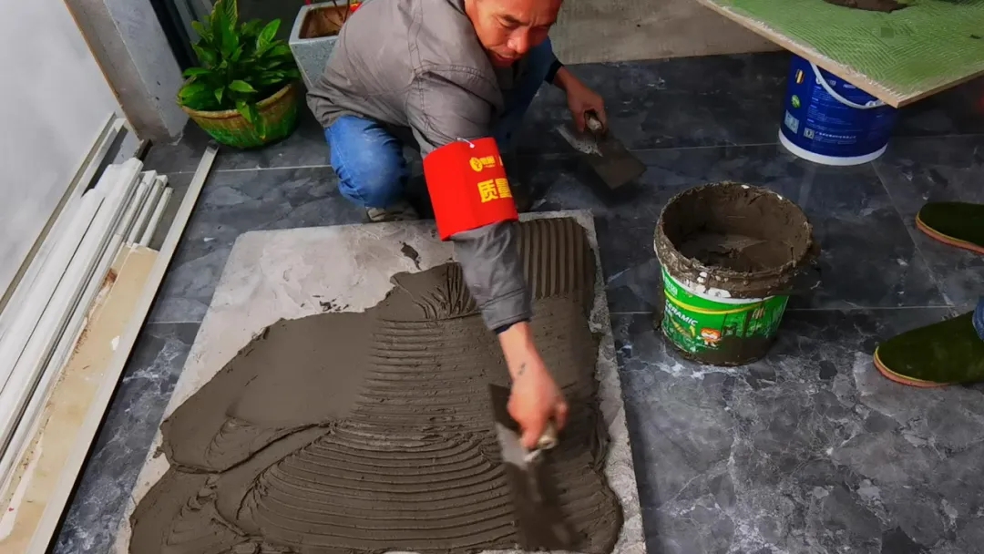 挑選產品后,由質量監督員,親自使用粵固產品進行瓷磚鋪貼,并針對不同種類的鋪貼材料(如水泥砂漿、瓷磚膠等)進行相互對比,讓參加活動的嘉賓,可以更直觀了解不同材料性能、質量之間的差異。