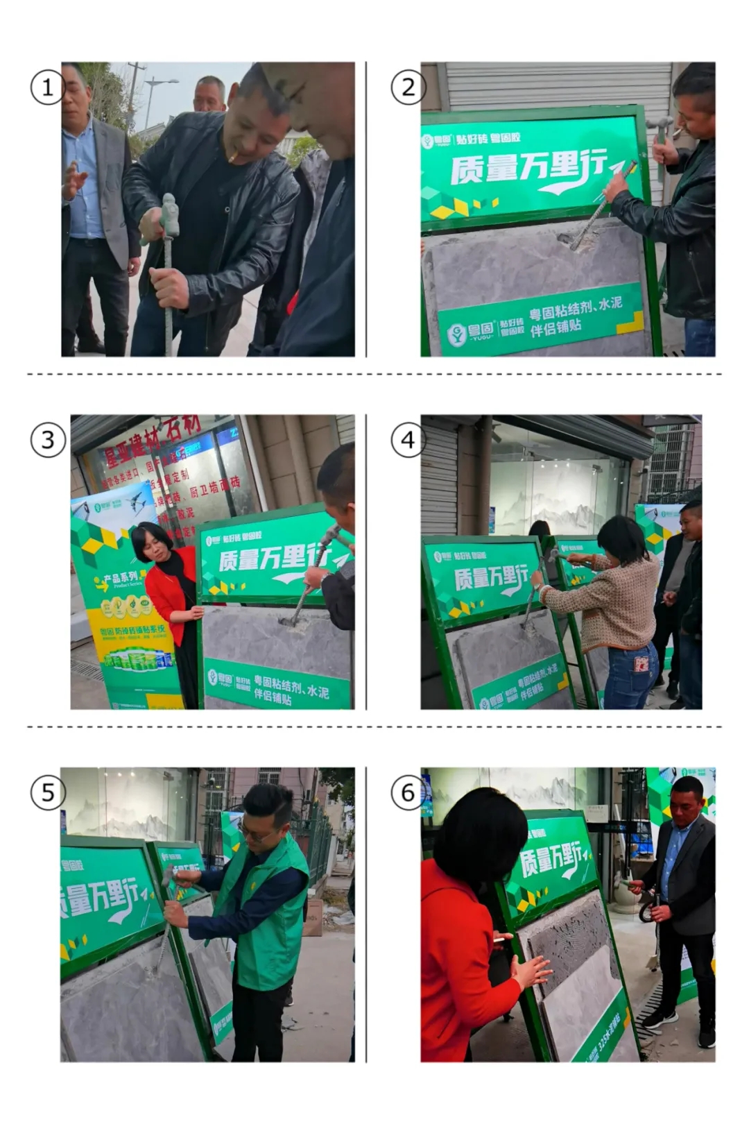 “粵固質量萬里行”嘉興站活動,特邀當地粵固合作伙伴與資深瓦工師傅擔當質量監督員,讓其隨機挑粵固產品進行抽檢評測,確保本次“粵固質量萬里”嘉興站活動公正、嚴謹!