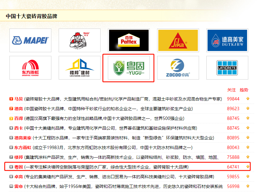 粵固榮獲中國品牌導購網評選“中國十大瓷磚背膠品牌”