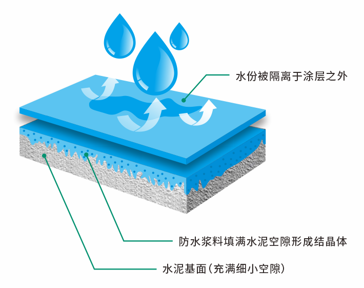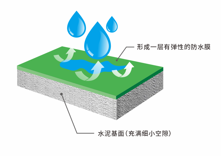 基于原(yuan)墻基面構建防(fang)水(shui)(shui)層,防(fang)水(shui)(shui)涂料可滲(shen)透進基層小孔,填滿基層空隙(xi)并形成(cheng)結晶,讓原(yuan)本松散的水(shui)(shui)泥(ni)原(yuan)墻變成(cheng)致密的防(fang)水(shui)(shui)層,使水(shui)(shui)分無法滲(shen)透基面,具備良好的防(fang)水(shui)(shui)效(xiao)果。