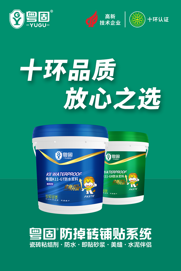 粵固K11系(xi)列防水漿料,原材料均(jun)使用環保材質,不含(han)甲醛、苯等有害污染物,通過了“中國環境標(biao)志產品”認證(zheng),產品綠色(se)環保、質量可靠(kao)。