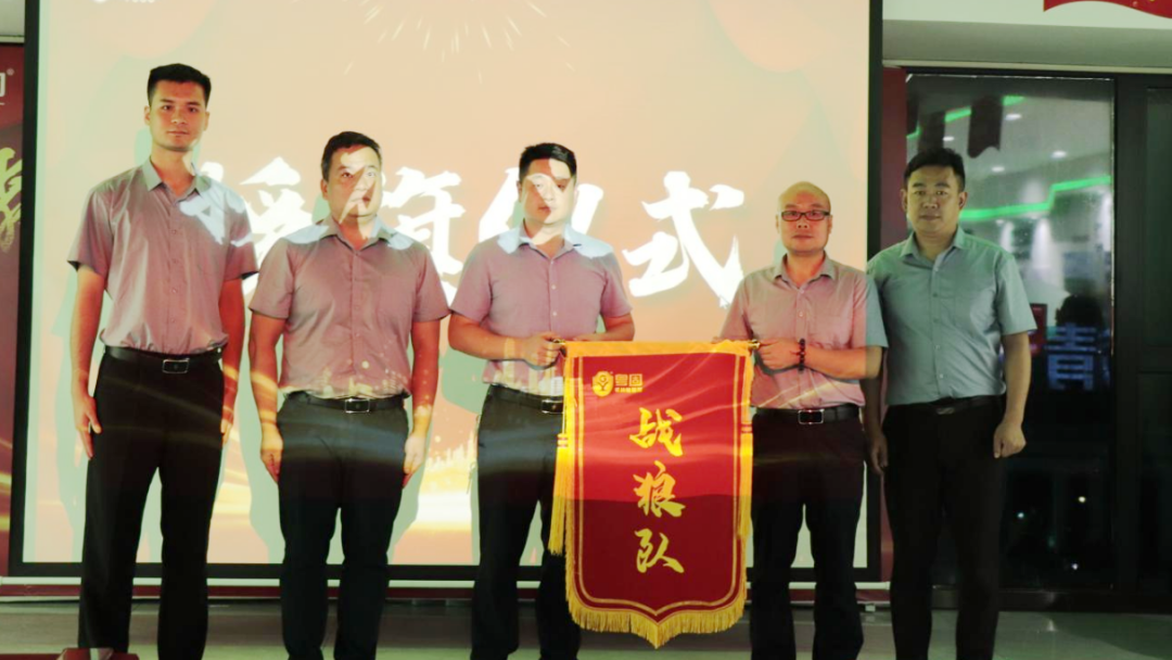 頒獎儀式結束后,對新加入粵固的團隊的進行授旗儀式,授予新團隊戰狼隊隊旗,希望新團隊在市場開拓工作中能夠發揮戰狼般的精神,團結協作,積極奮戰,勇創佳績!