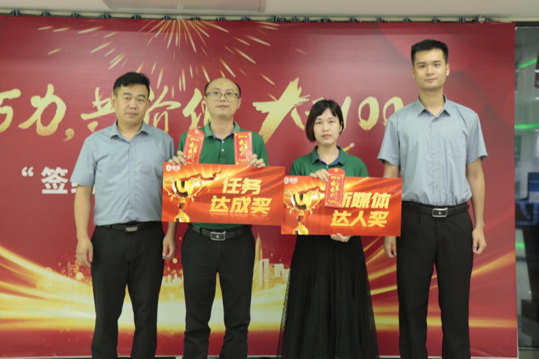 并對粵固大干100天第三階段涌現出來的招商達人、新媒體達人、優秀團隊等表現優異的員工進行頒獎表彰。