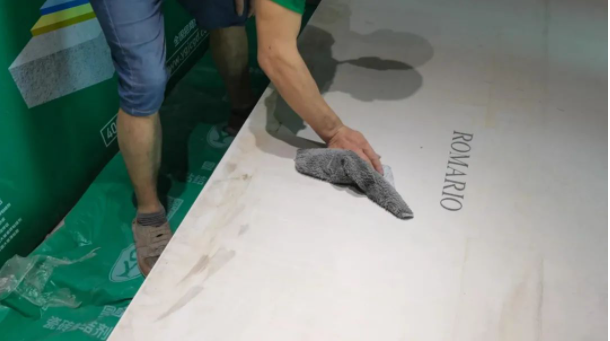 磚(zhuan)(zhuan)面(mian)清(qing)(qing)理:涂刷粵固(gu)巖板瓷磚(zhuan)(zhuan)粘結劑前需將瓷磚(zhuan)(zhuan)背面(mian)的粉狀、油性等脫模劑清(qing)(qing)理干凈;