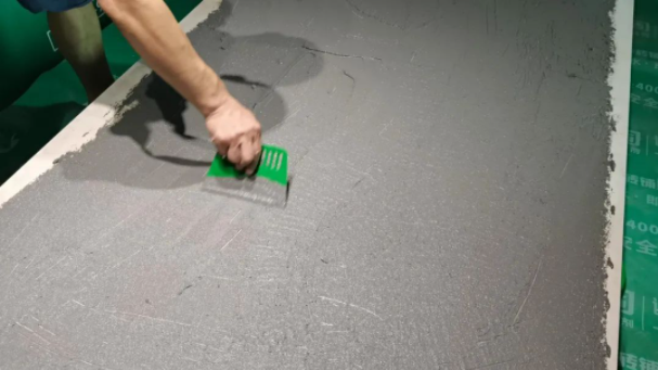 抹涂刮膠:漿料均(jun)勻地刮抹在(zai)瓷磚背面,將瓷磚背面的溝隙填滿,避免漏涂。