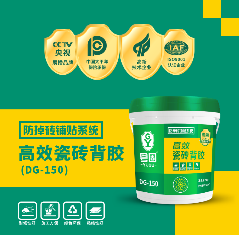 想要瓷磚粘結(jie)牢(lao)固(gu),粵(yue)粵(yue)建議大家在貼(tie)磚的時候選(xuan)用粵(yue)固(gu)高效瓷磚背膠(DG-150)