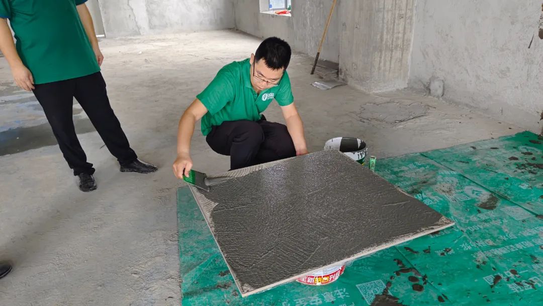 在(zai)深入(ru)了解(jie)粵固產(chan)品后,進入(ru)了實操教學體驗環節,通(tong)過讓新員工親自體驗實操粵固雙組份背膠、瓷磚膠等大板、巖板鋪貼材料。讓每位受訓的新員工都可以快速直觀的掌握了解粵固產品特性與大板、巖板鋪貼工藝的施工要點。為接下來的產品咨詢、品牌服務等各項工作打(da)下堅(jian)實的基礎。