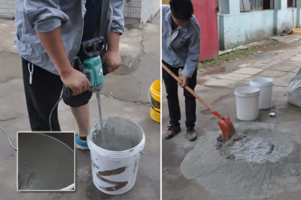 首先(xian)用鐵鏟攪拌很難將(jiang)瓷磚膠混合均勻,容易出現粉團,導致(zhi)其中的添加劑不能充分溶解,降低瓷磚膠的粘結性;其(qi)次,在地上(shang)攪拌(ban)容(rong)易(yi)與灰塵、雜物等混合在一起,受到污染,進而影響產品的使用效果。