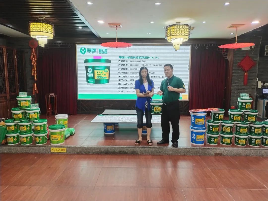 除了理論知識分享,本次交(jiao)流會也有實操(cao)環節,讓參會的瓦(wa)工師傅們(men)親身體驗、操(cao)作使用粵固(gu)背膠產品(pin),粵固(gu)背膠的卓越鋪貼效果得到(dao)瓦(wa)工師傅們(men)的一致(zhi)好(hao)評!本次粵固大板、巖板鋪貼技術交流會走進廣東韶關,增設了產品訂貨銷售環節,在總部老師的幫助下,取得了良好的效果,現場反響非常熱烈。共計(ji)訂購(gou)出了500多桶粵固背膠(jiao)產品與防水配套(tao)產品若干,為今后經銷商伙伴在當地的銷售事業牽好(hao)頭、引好路。