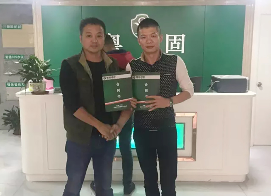 2016粵(yue)固(gu)建(jian)材(cai)當紅不讓,喜訊(xun)不斷(duan)傳來!佛(fo)山三水項(xiang)總2015年成(cheng)功(gong)完成(cheng)銷售目標(biao),2016年再接再厲續約(yue)粵(yue)固(gu)建(jian)材(cai),攜手粵(yue)固(gu)建(jian)材(cai)再創輝煌。祝愿項(xiang)總生意興隆(long),財源滾滾,更上一層樓。