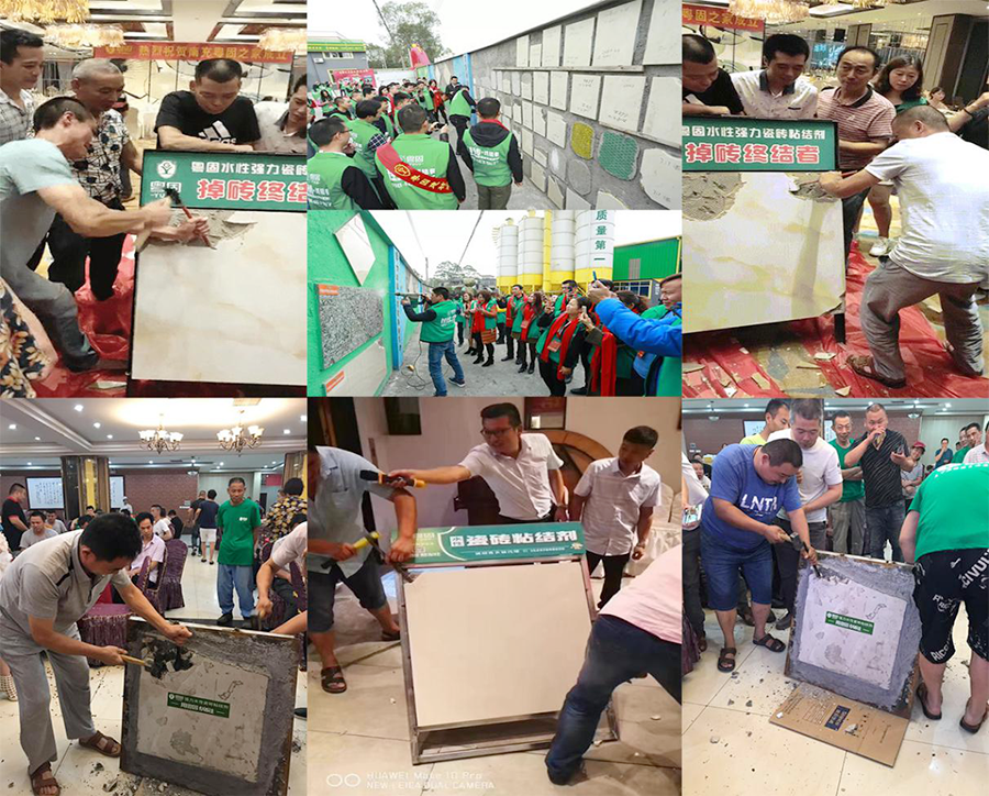 培訓中一定少不了現場我(wo)們讓新老(lao)客(ke)戶參(can)與品質性能(neng)提升后的(de)產(chan)品測(ce)試,體驗粵(yue)(yue)固(gu)粘結(jie)劑的(de)粘結(jie)性能(neng),在敲(qiao)、砸、捶(chui)、打的(de)暴力(li)檢驗方式下,見證粵(yue)(yue)固(gu)的(de)產(chan)品品質,盡顯粵(yue)(yue)固(gu)真實力(li)。