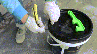 2、使用美工刀沿著桶蓋密封條開一個口子