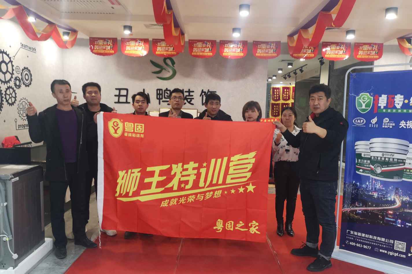 近日,在丑小鴨裝飾公司舉辦了由粵固組織的關于粵固防掉磚鋪貼系統的瓷磚粘結劑及其他產品的專場培訓,粵固建材攜手丑小鴨裝飾公司各工作人員以及裝修師傅們相聚一堂,加強雙方的溝通和合作,大家攜手共進,合作共贏!
