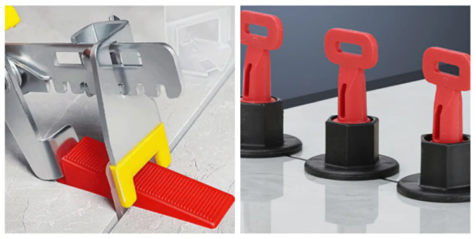 現在市面上的瓷磚找平器主要分為兩種一種是楔子型另一種是擰蓋型。楔子型瓷磚找平器的好處是瓷磚固化定位后拆除方便,一錘就可以輕易將找平器取出,但缺點是在施工時需要安裝塑料卡扣底座。而擰蓋型的好處是安裝方便可重復使用,但缺點是鋼針如果被瓷磚膠固化粘住了就非常難取出。