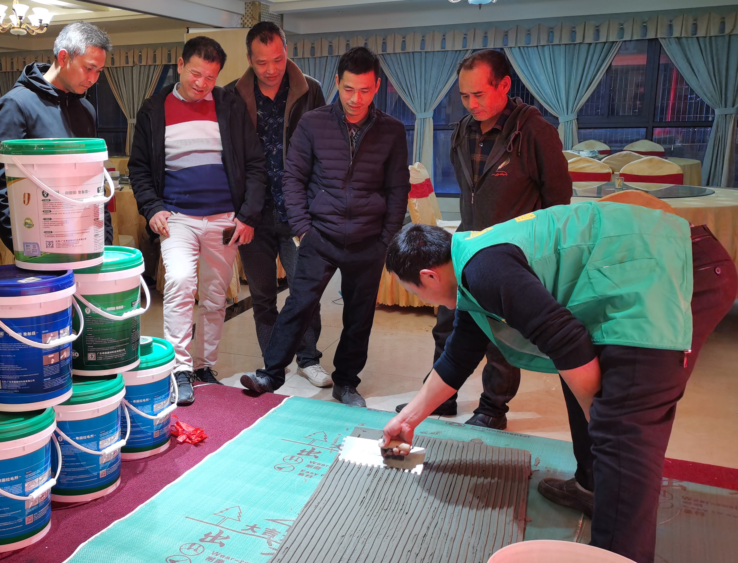 此(ci)次,粵固(gu)大板巖板粘結劑(ji)技術交流會走進贛州南康(kang),將當地的(de)資深瓦(wa)工(gong)、建材(cai)行業從(cong)業者、渠道(dao)商、合作伙伴聚集起來(lai),大家共同溝通(tong)交流(liu)大板、巖(yan)板材料鋪(pu)貼工藝發展,現場氣氛非(fei)常熱(re)烈!